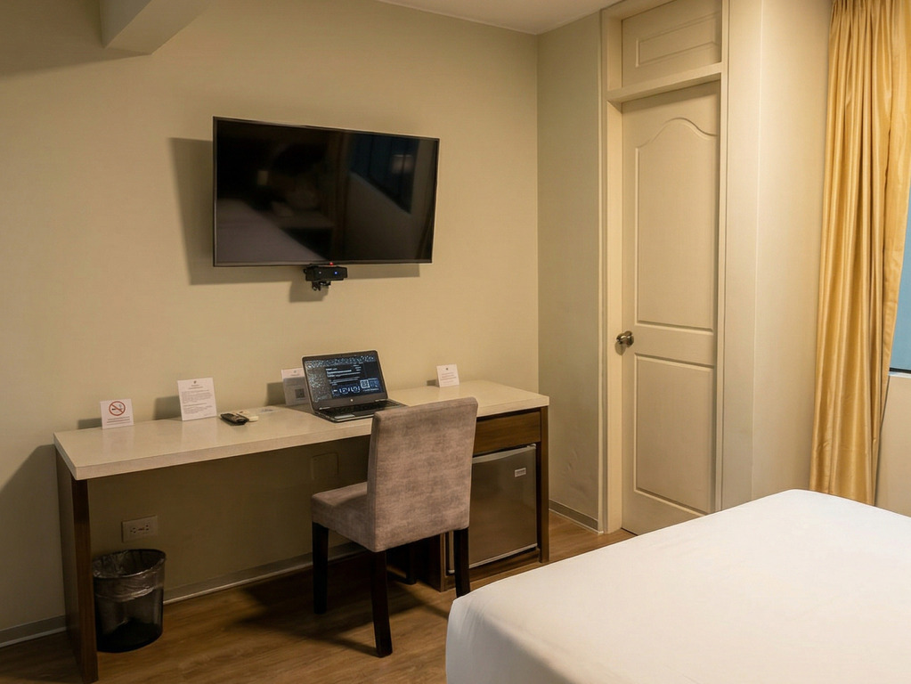 Our double standard or executive rooms are located on all floors of the hotel and have internal views. These rooms have a double bed, work desk, cable TV, closet and private bathroom.