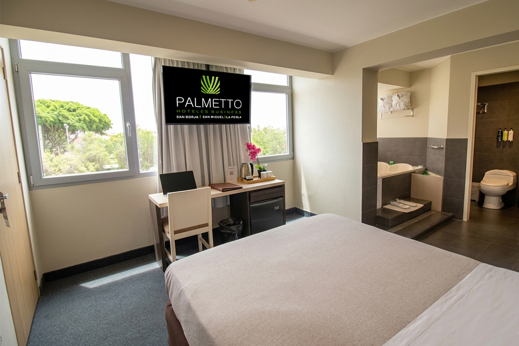 Nuestras habitaciones suite con bañera hidromasaje, se encuentran ubicadas en todos los pisos del hotel y cuentan con vistas exteriores hacia la ciudad. Estas habitaciones cuentan con una cama de tamaño Queen, escritorio de trabajo, aire acondicionado y calefacción, TV cable, jacuzzi, closet y baño privado.